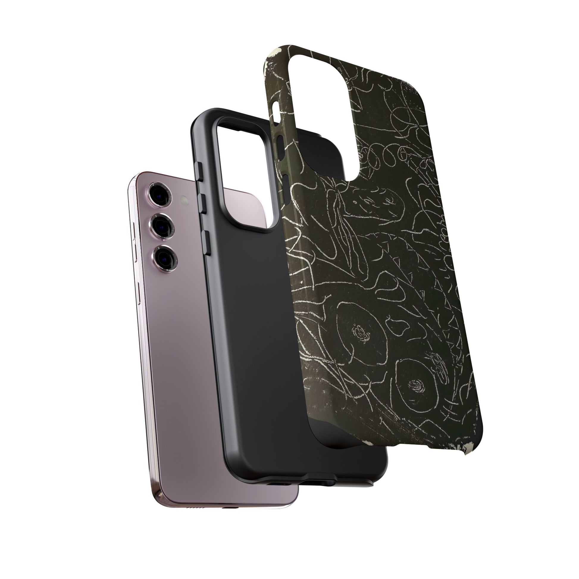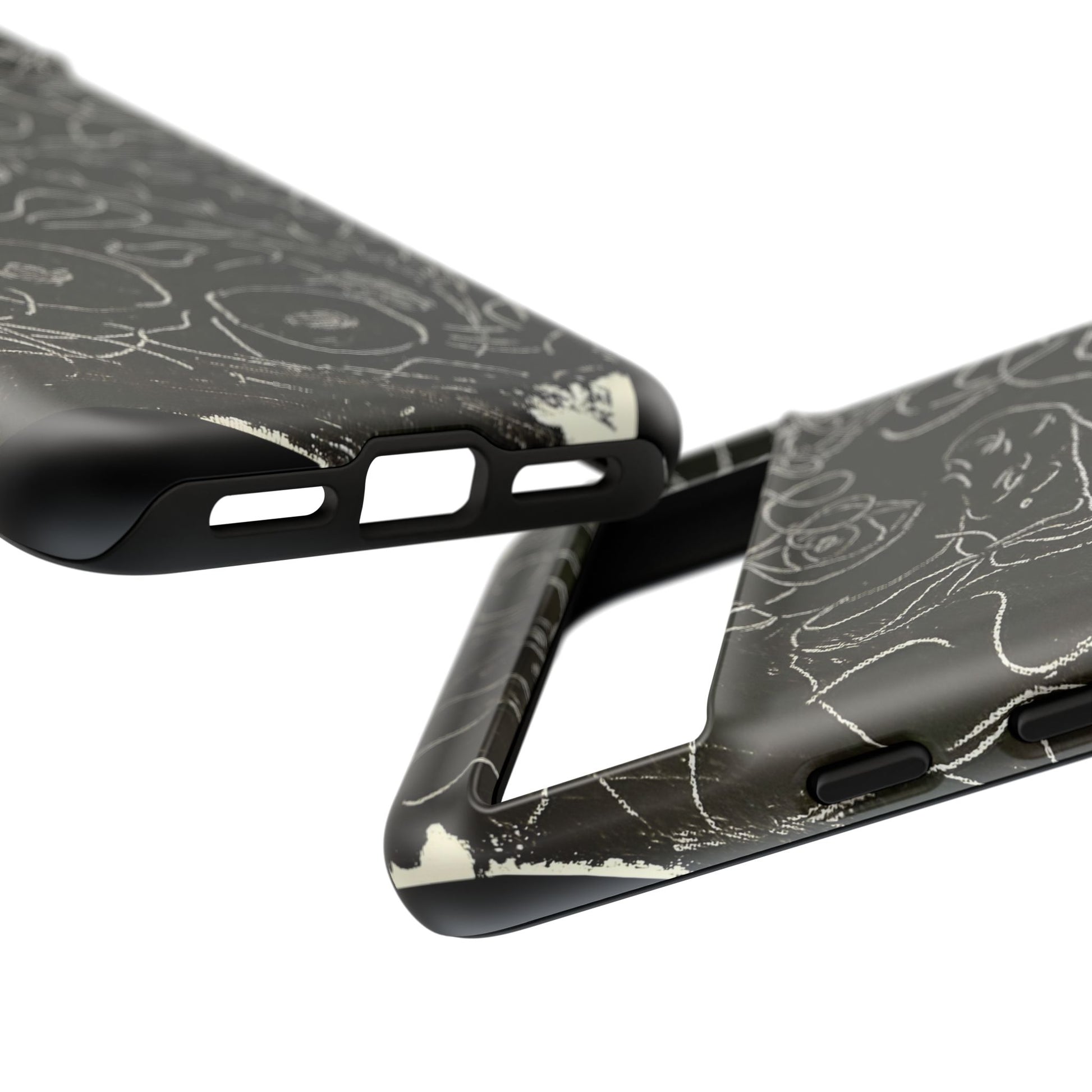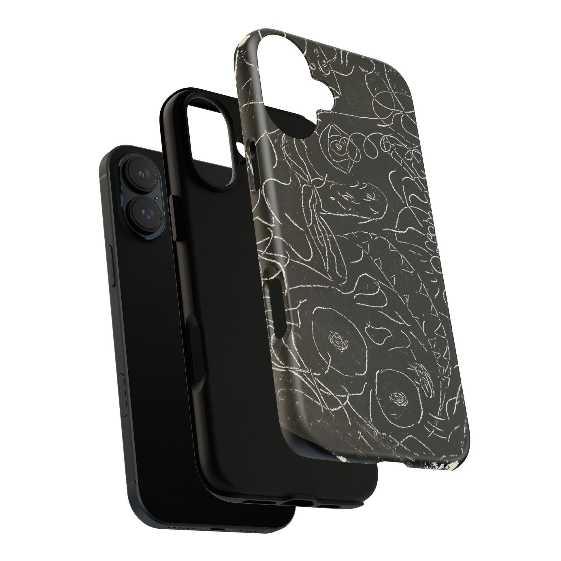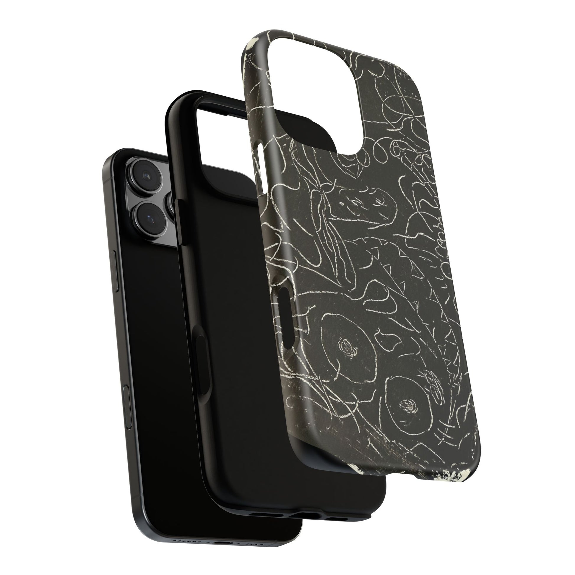 The Tangled Echoes Tough Phone Case merges sleek design with strong protection — featuring Kyle’s signature white-on-black linework from the Echo13 collection.