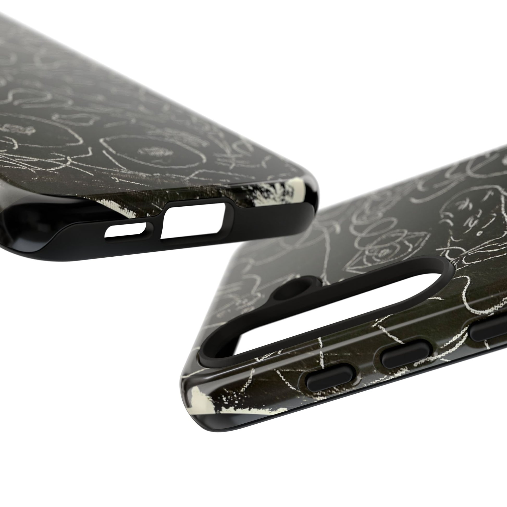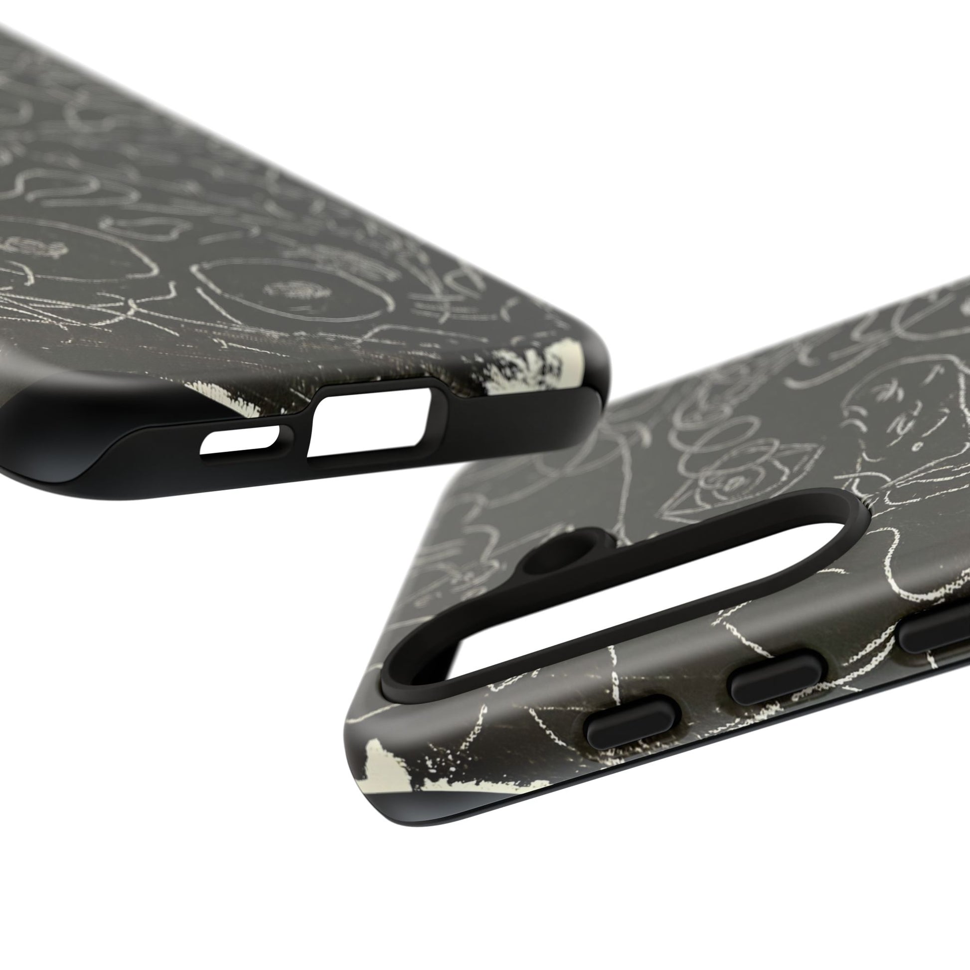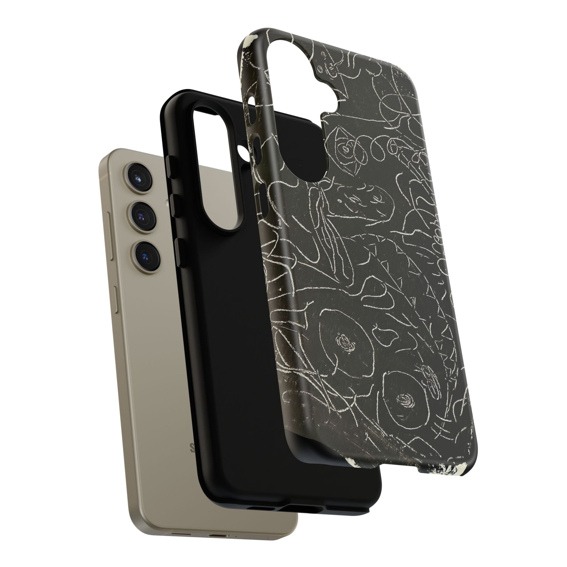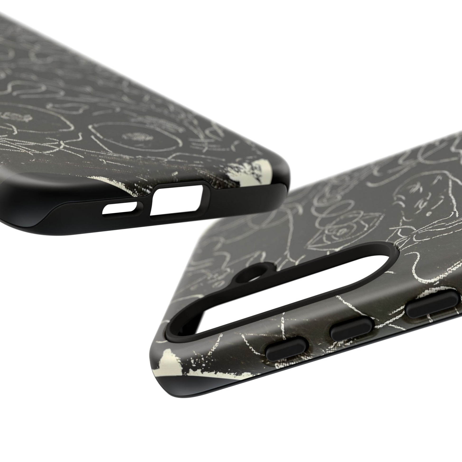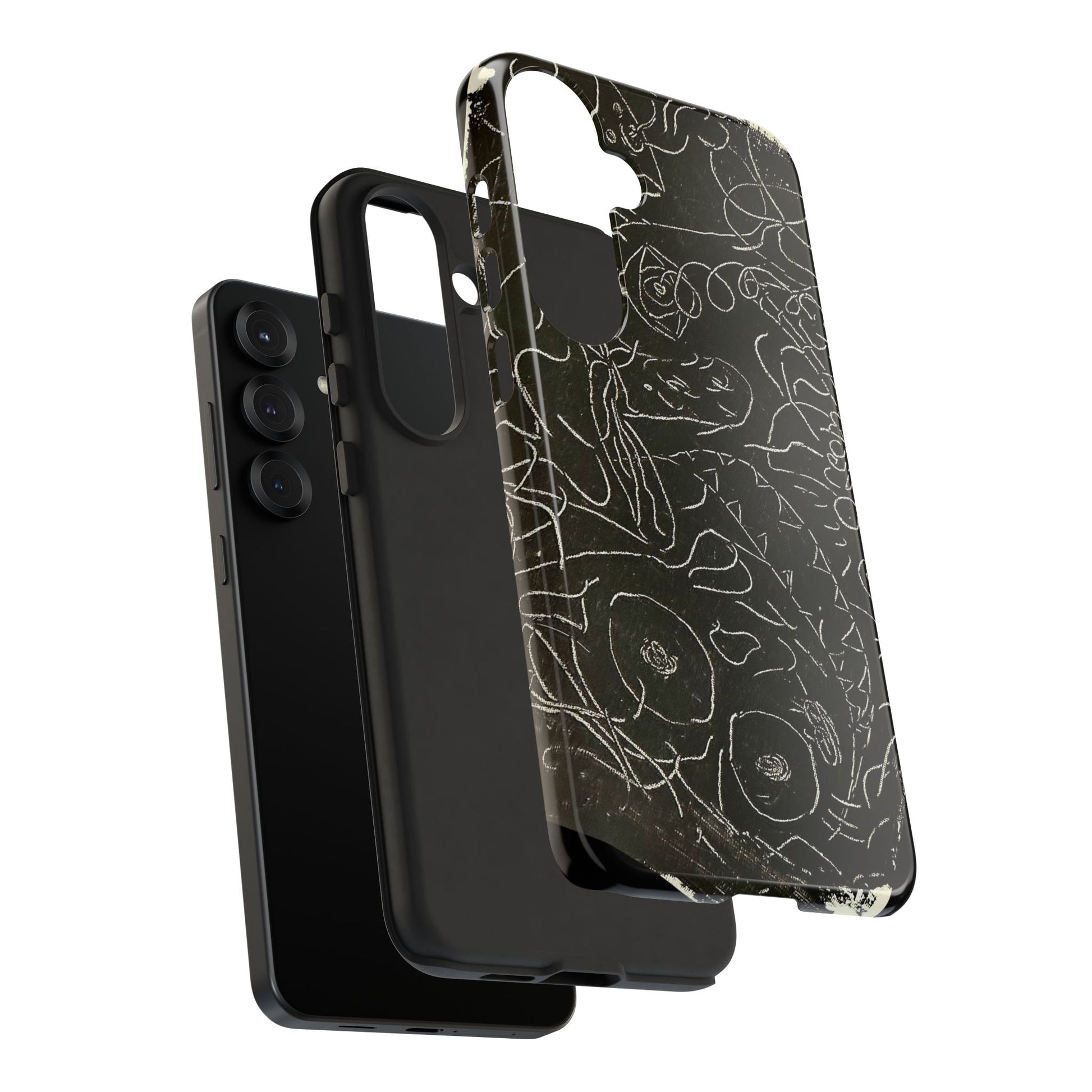The Tangled Echoes Tough Phone Case merges sleek design with strong protection — featuring Kyle’s signature white-on-black linework from the Echo13 collection.