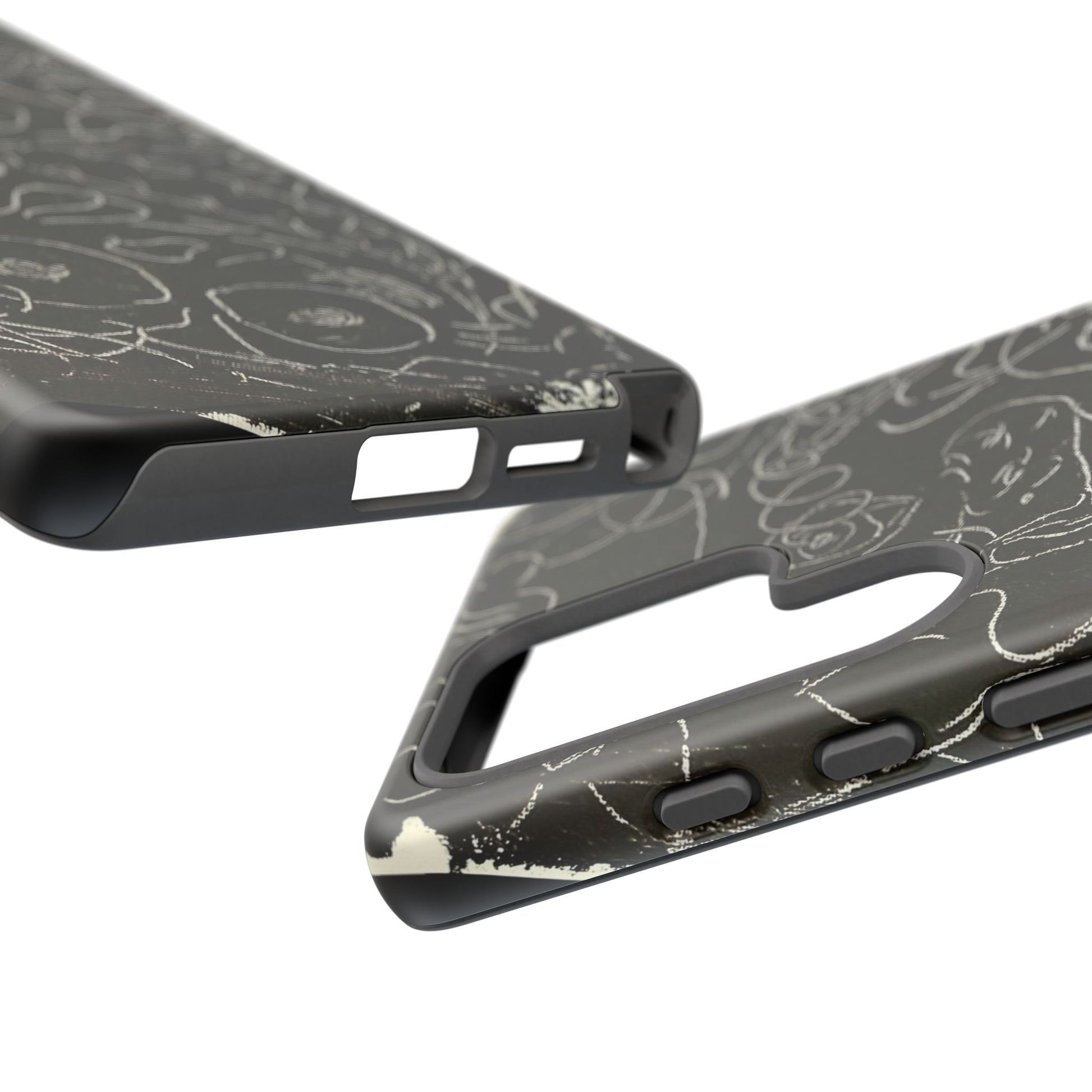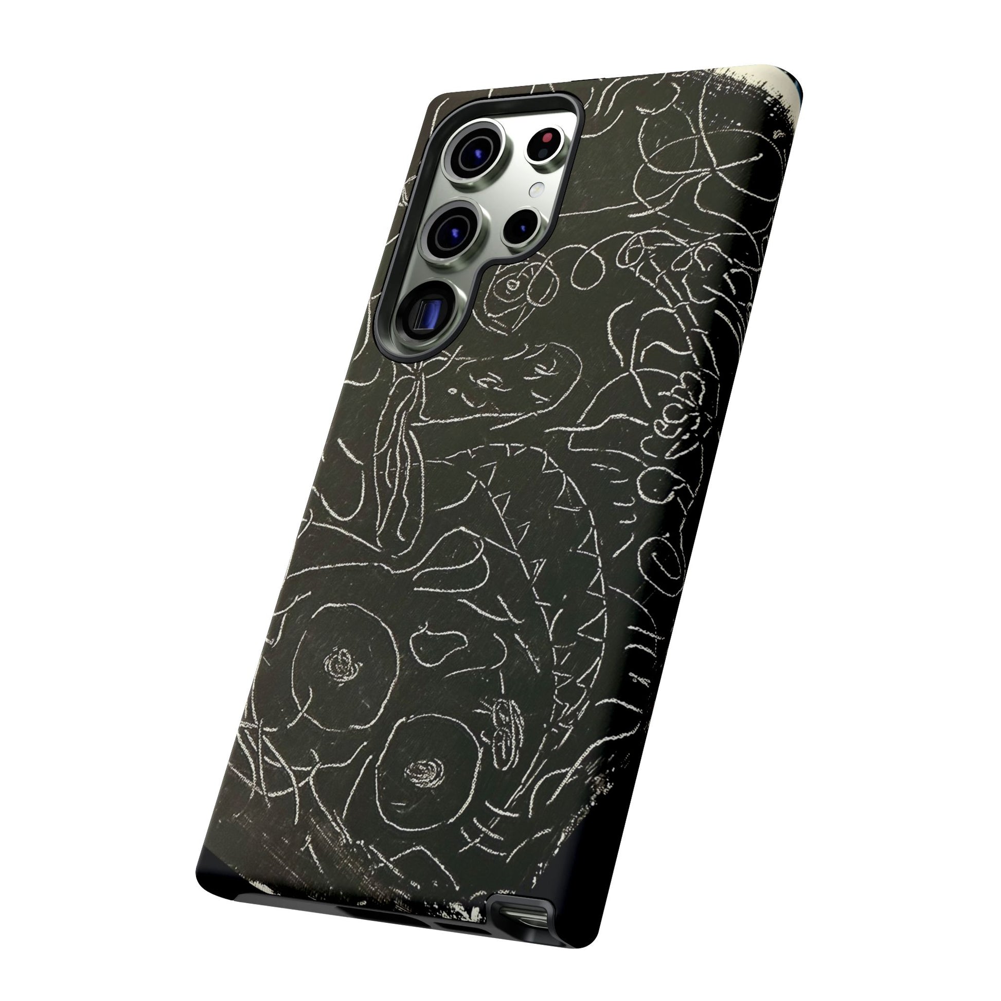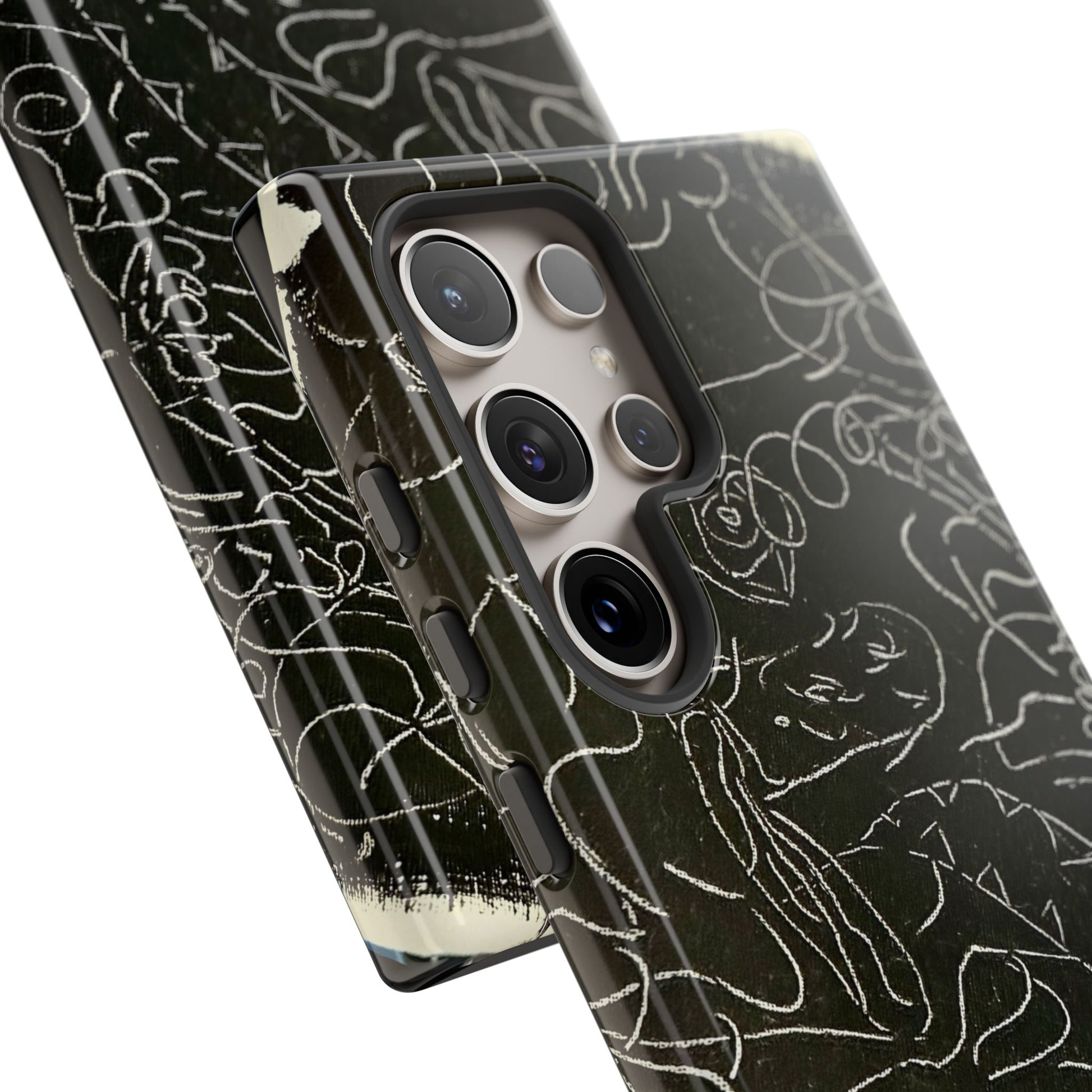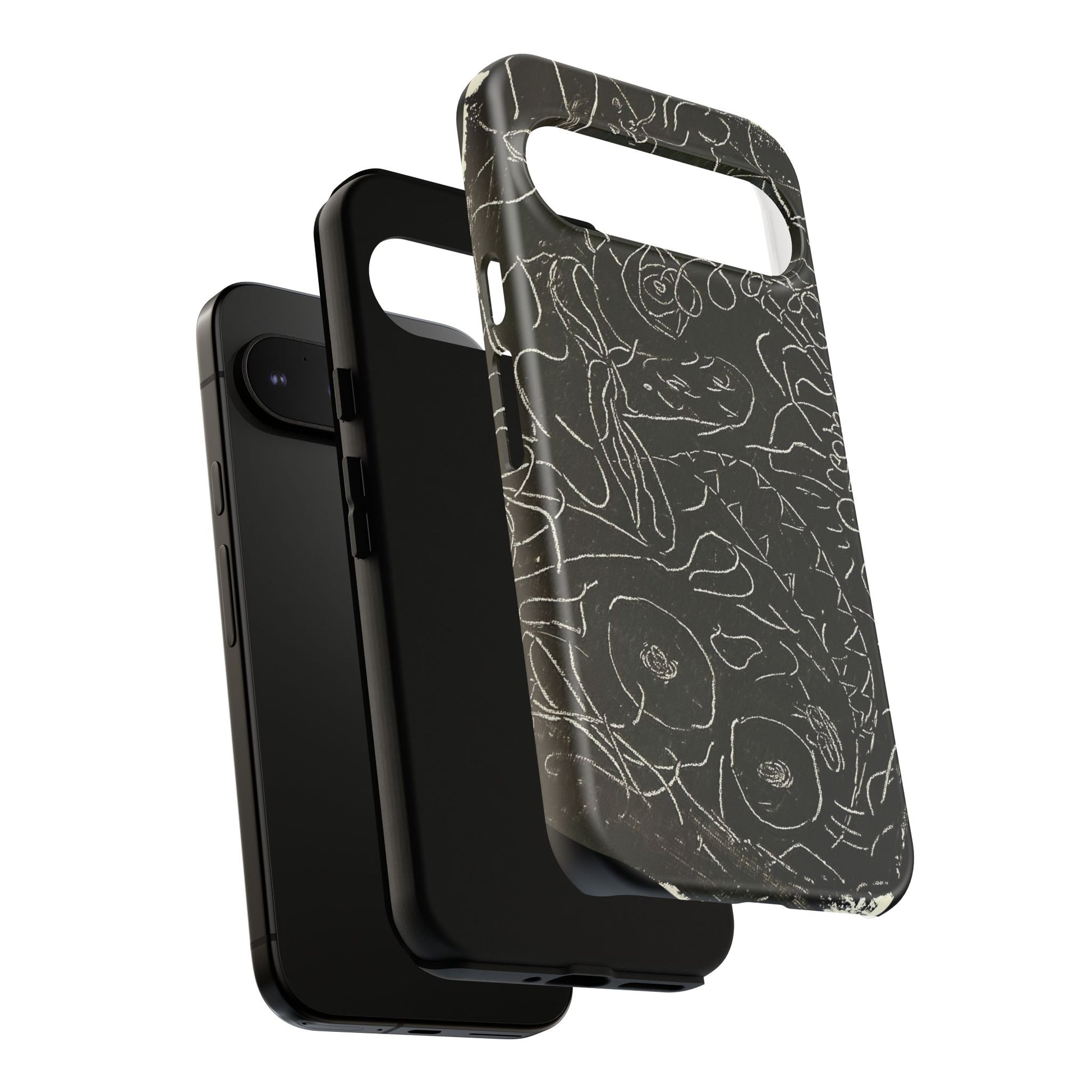 The Tangled Echoes Tough Phone Case merges sleek design with strong protection — featuring Kyle’s signature white-on-black linework from the Echo13 collection.