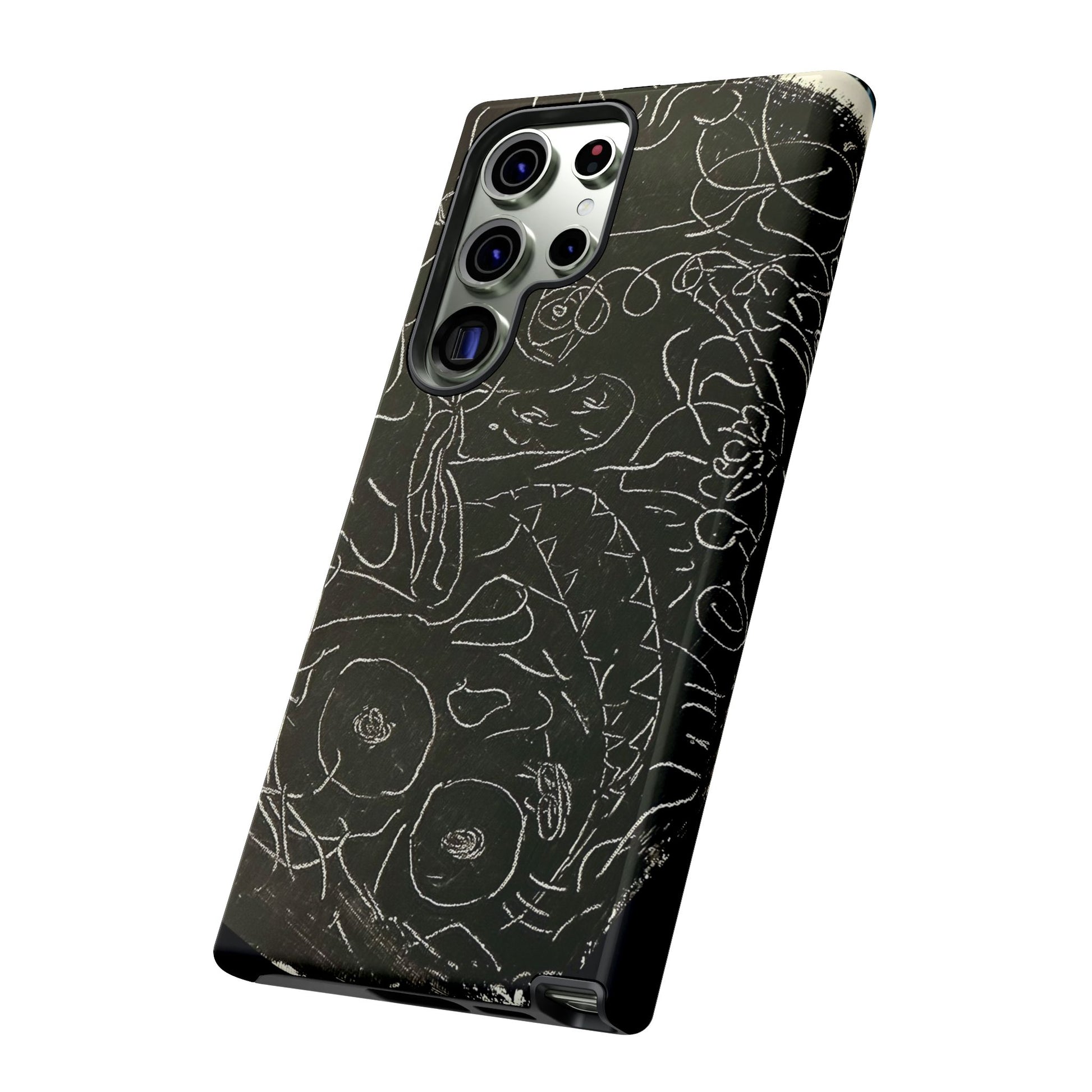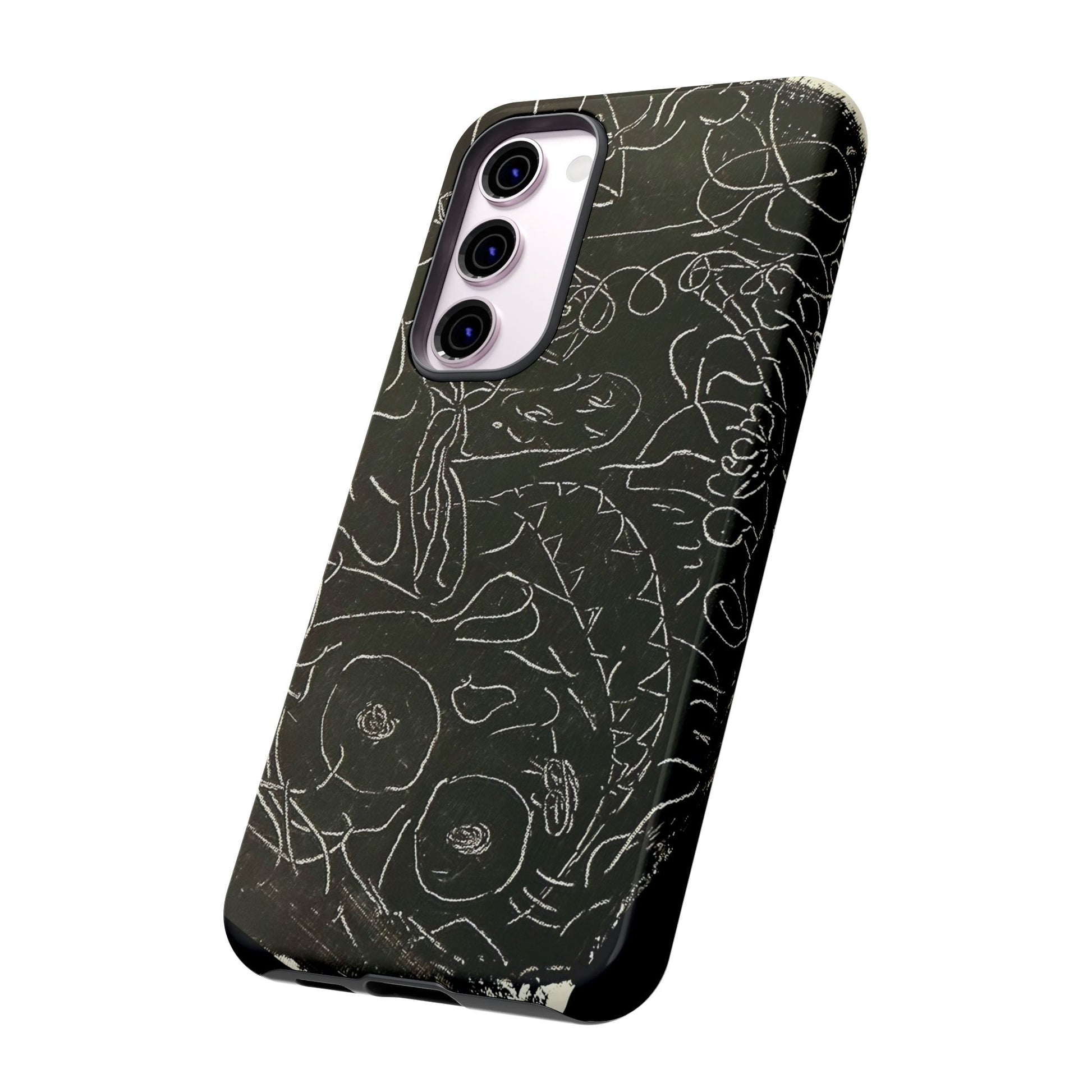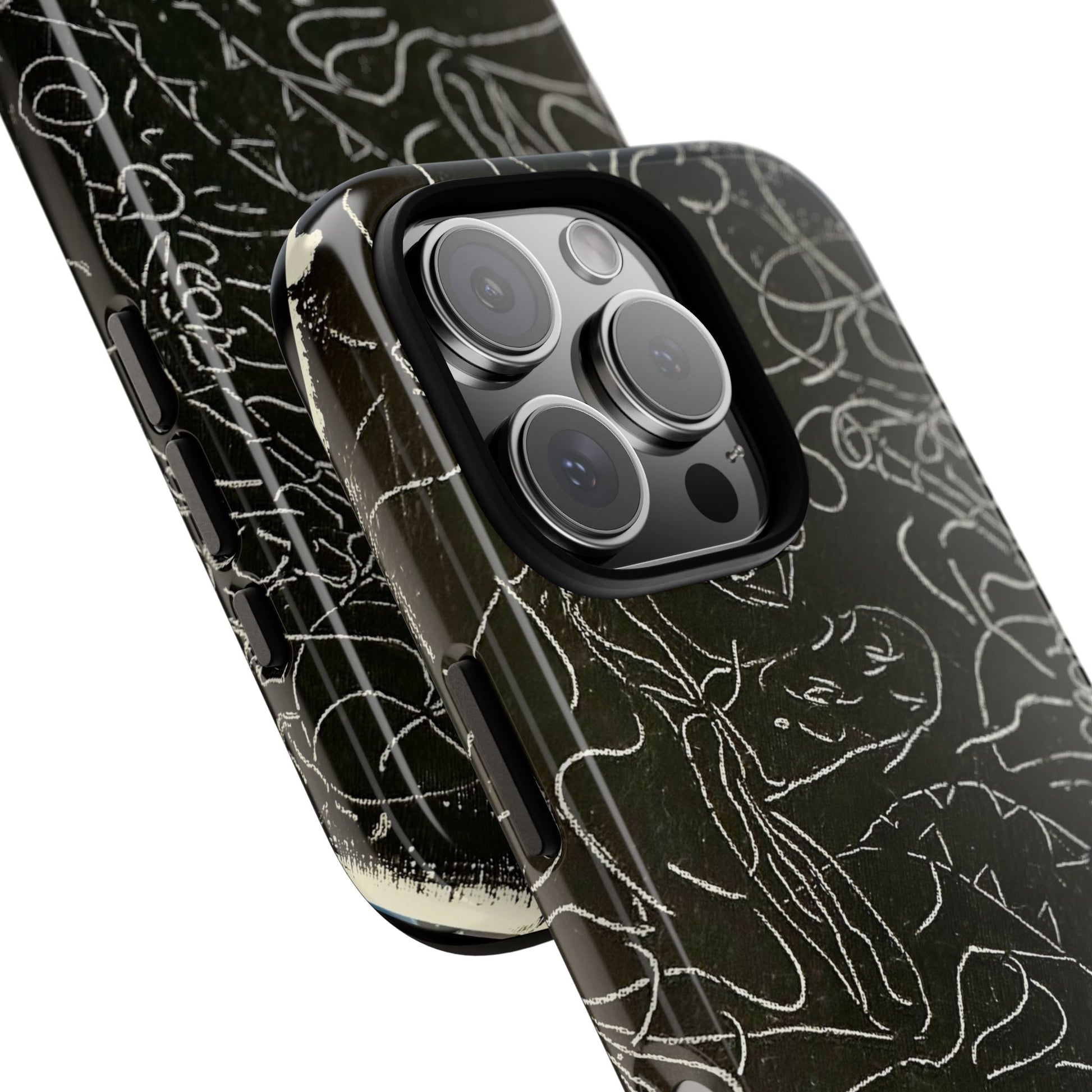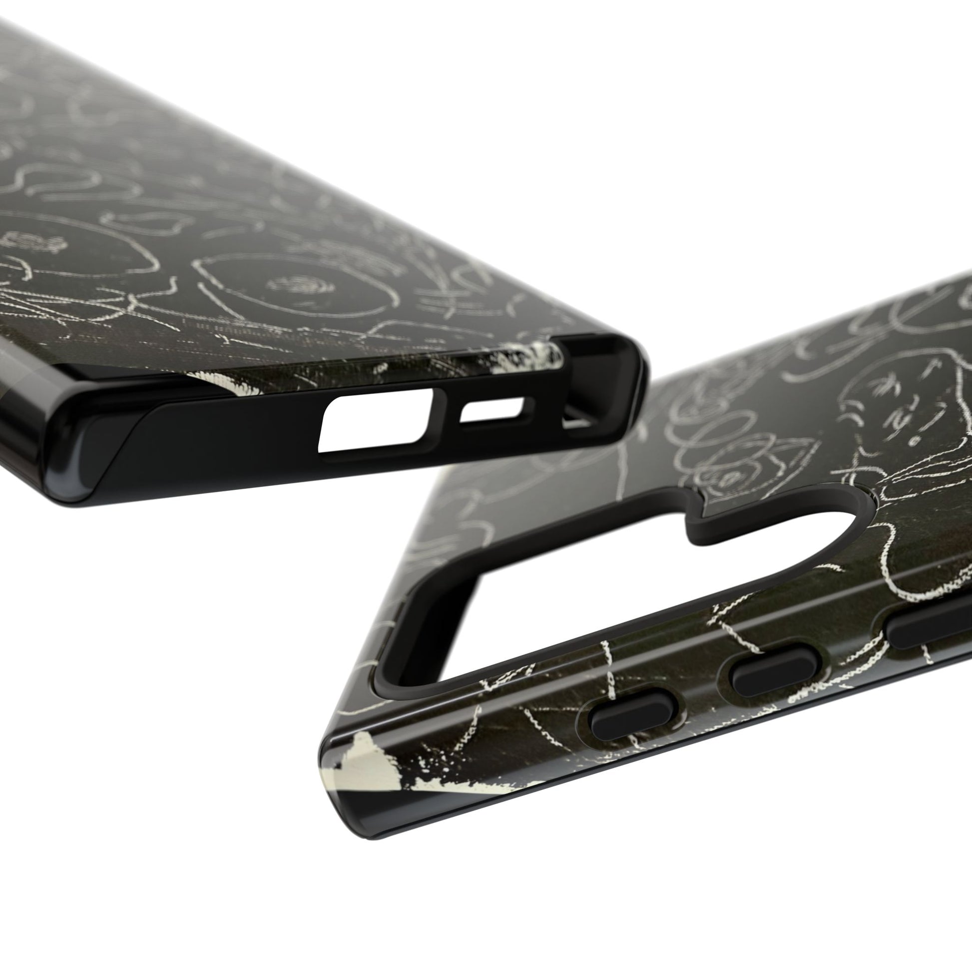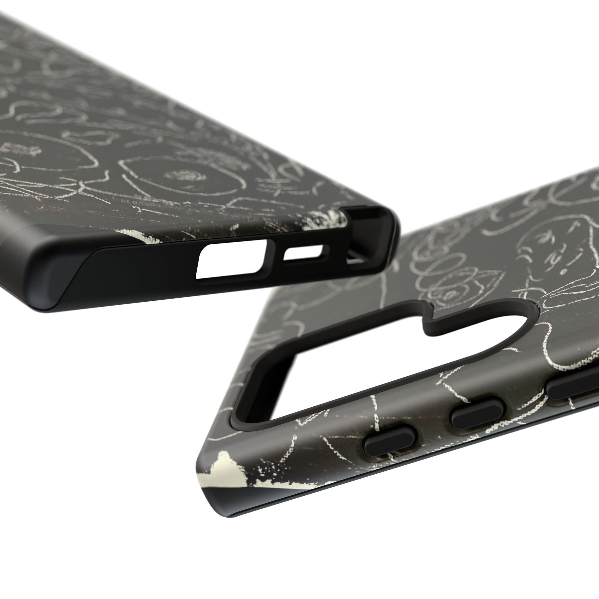 The Tangled Echoes Tough Phone Case merges sleek design with strong protection — featuring Kyle’s signature white-on-black linework from the Echo13 collection.