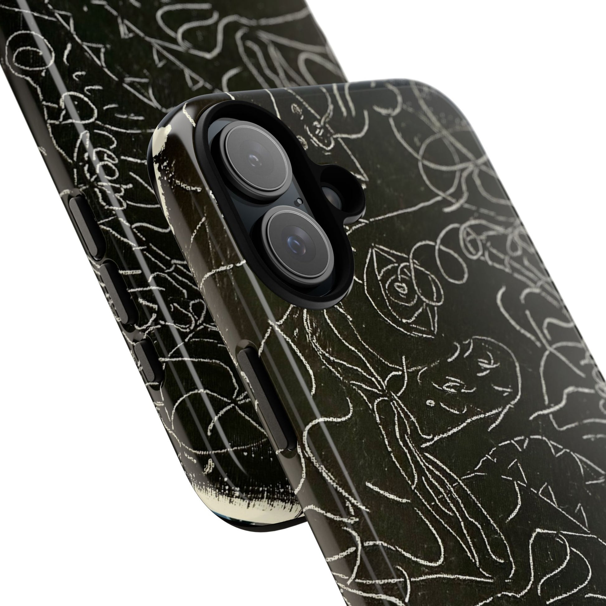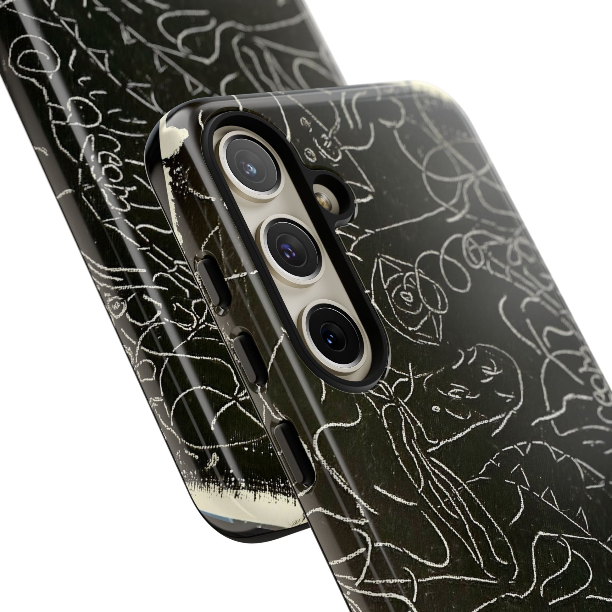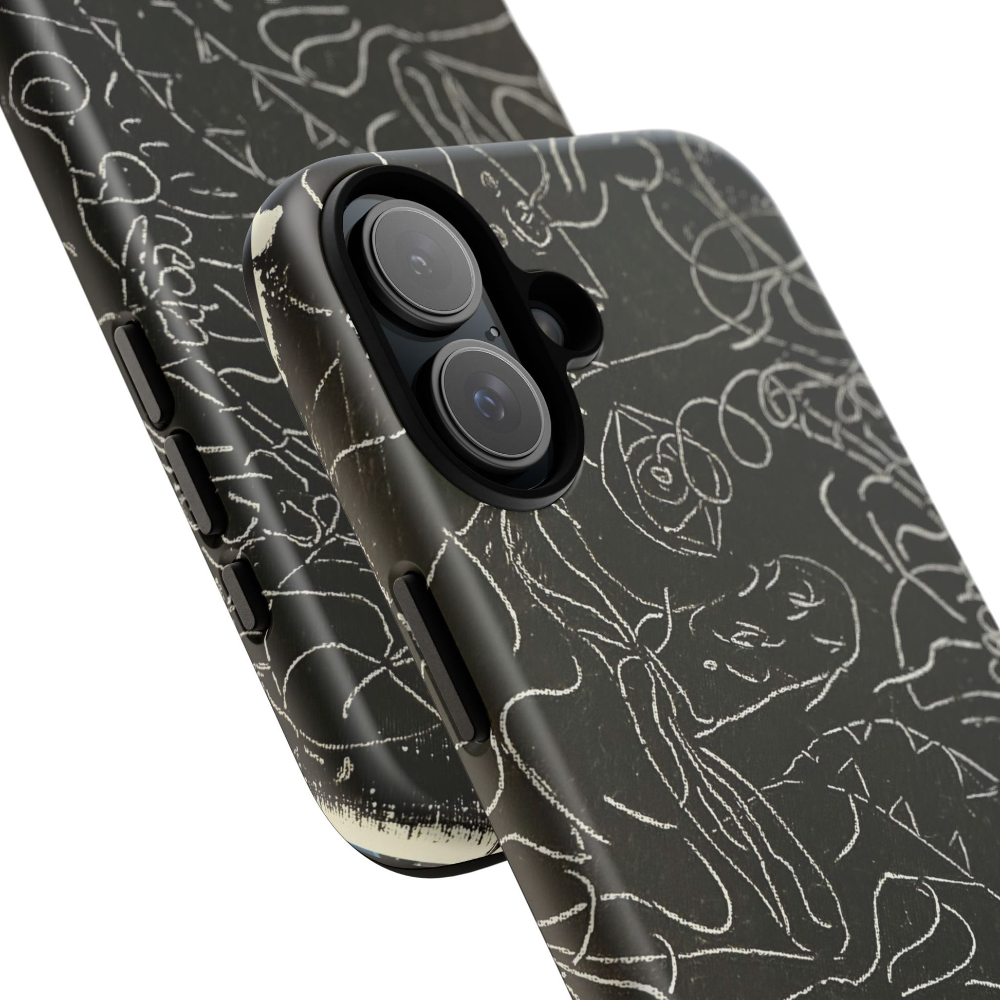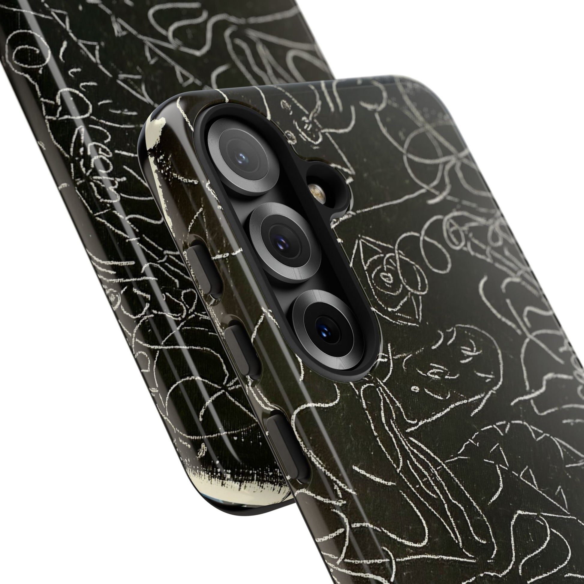 The Tangled Echoes Tough Phone Case merges sleek design with strong protection — featuring Kyle’s signature white-on-black linework from the Echo13 collection.