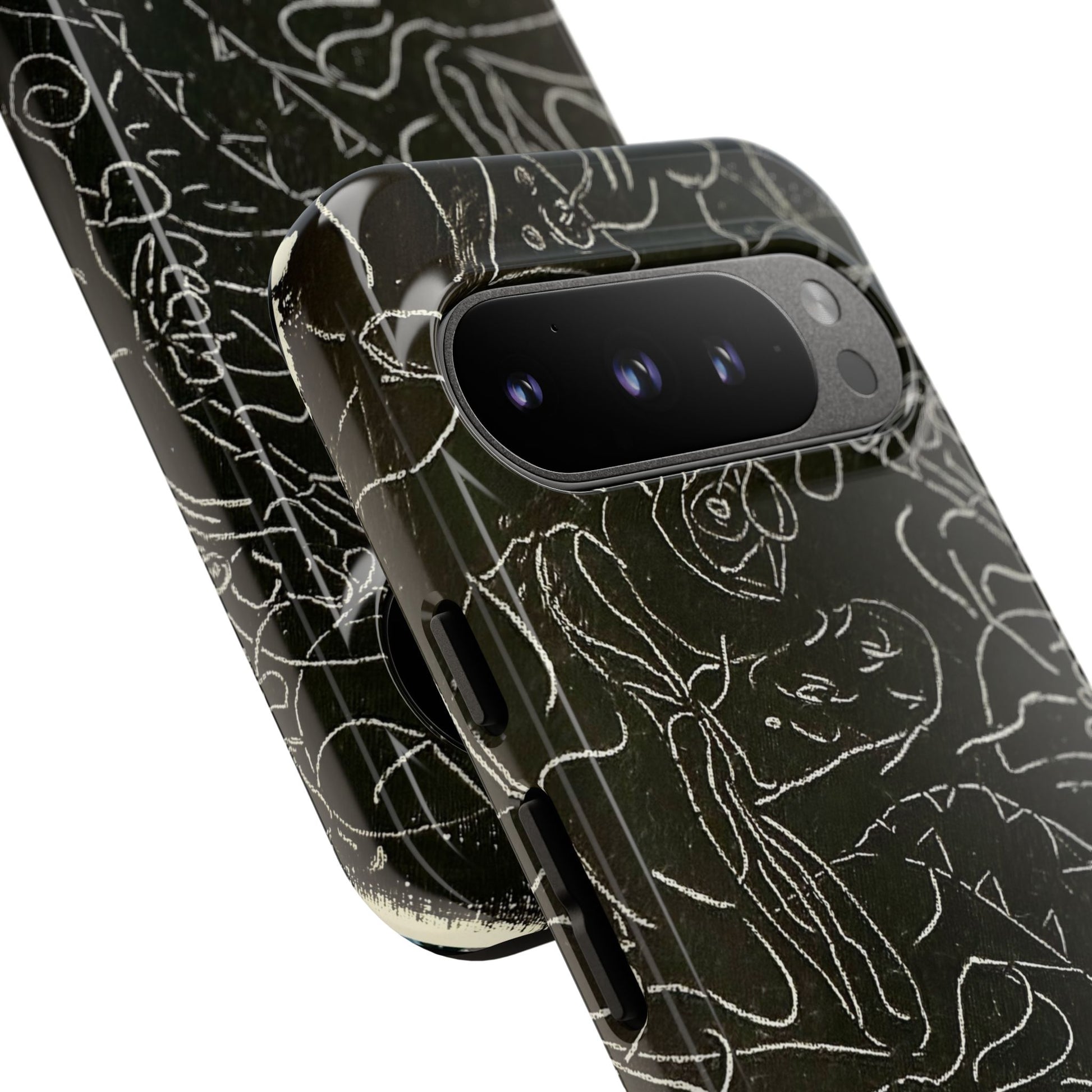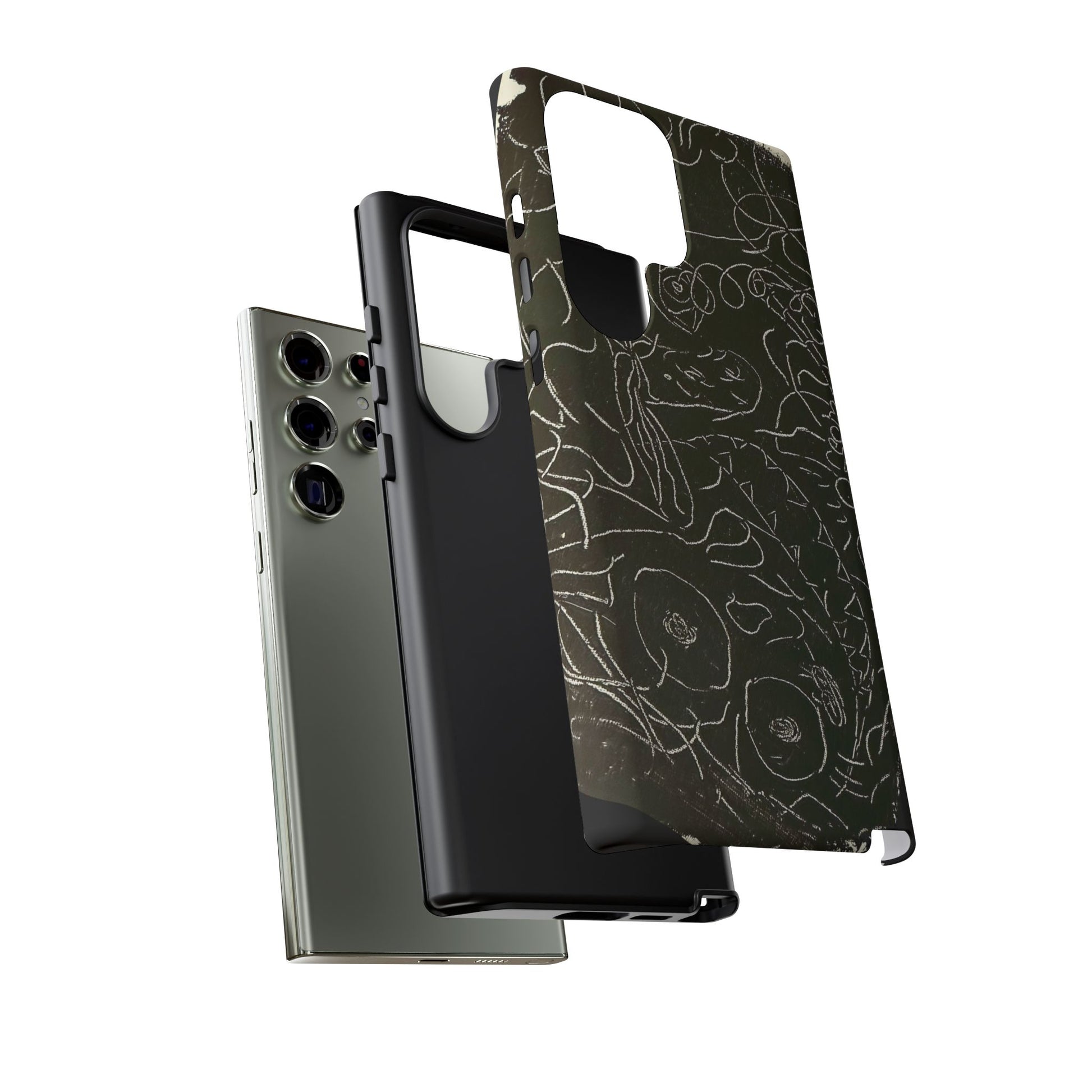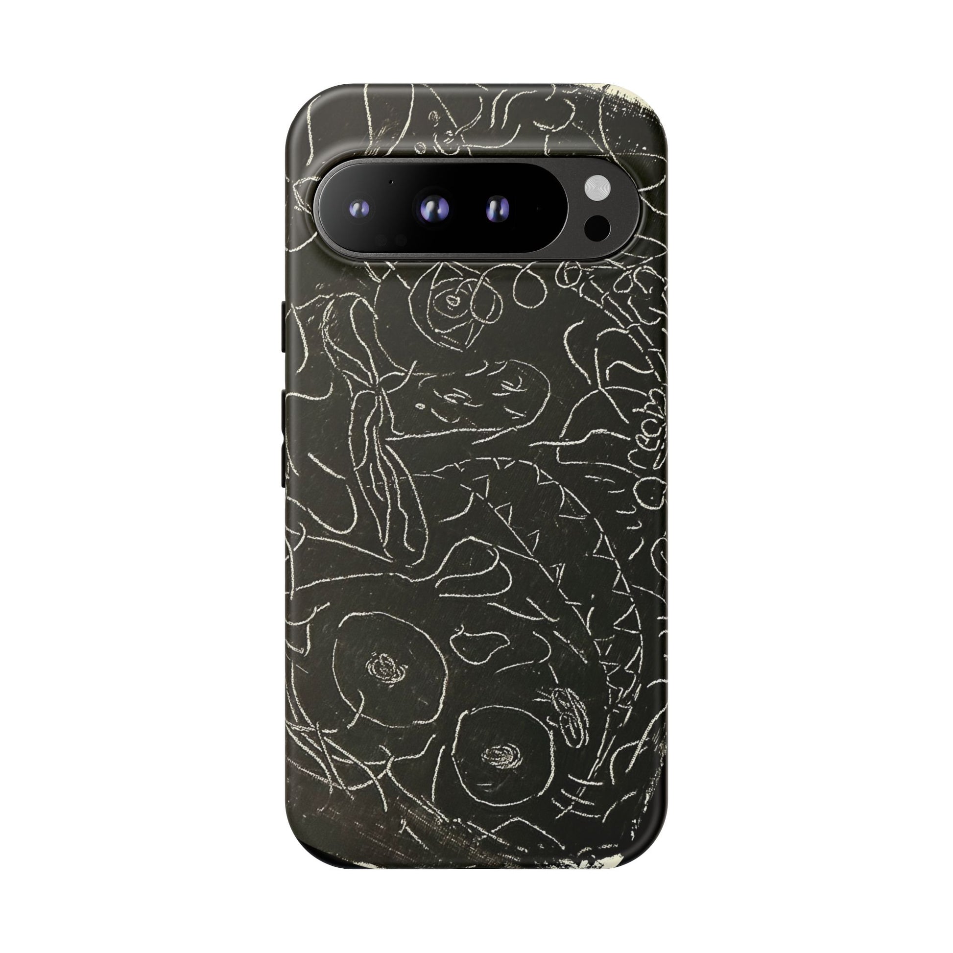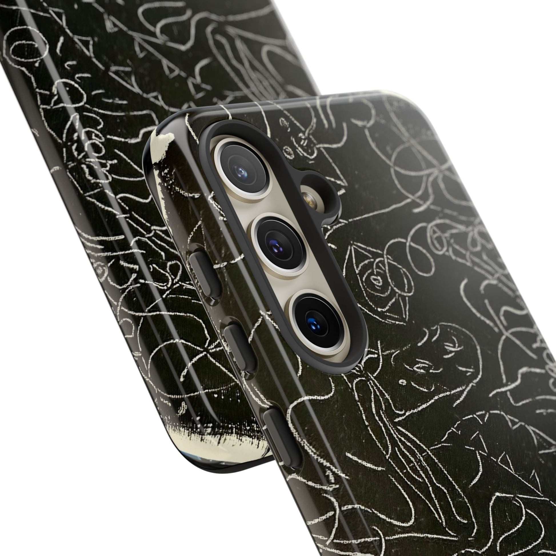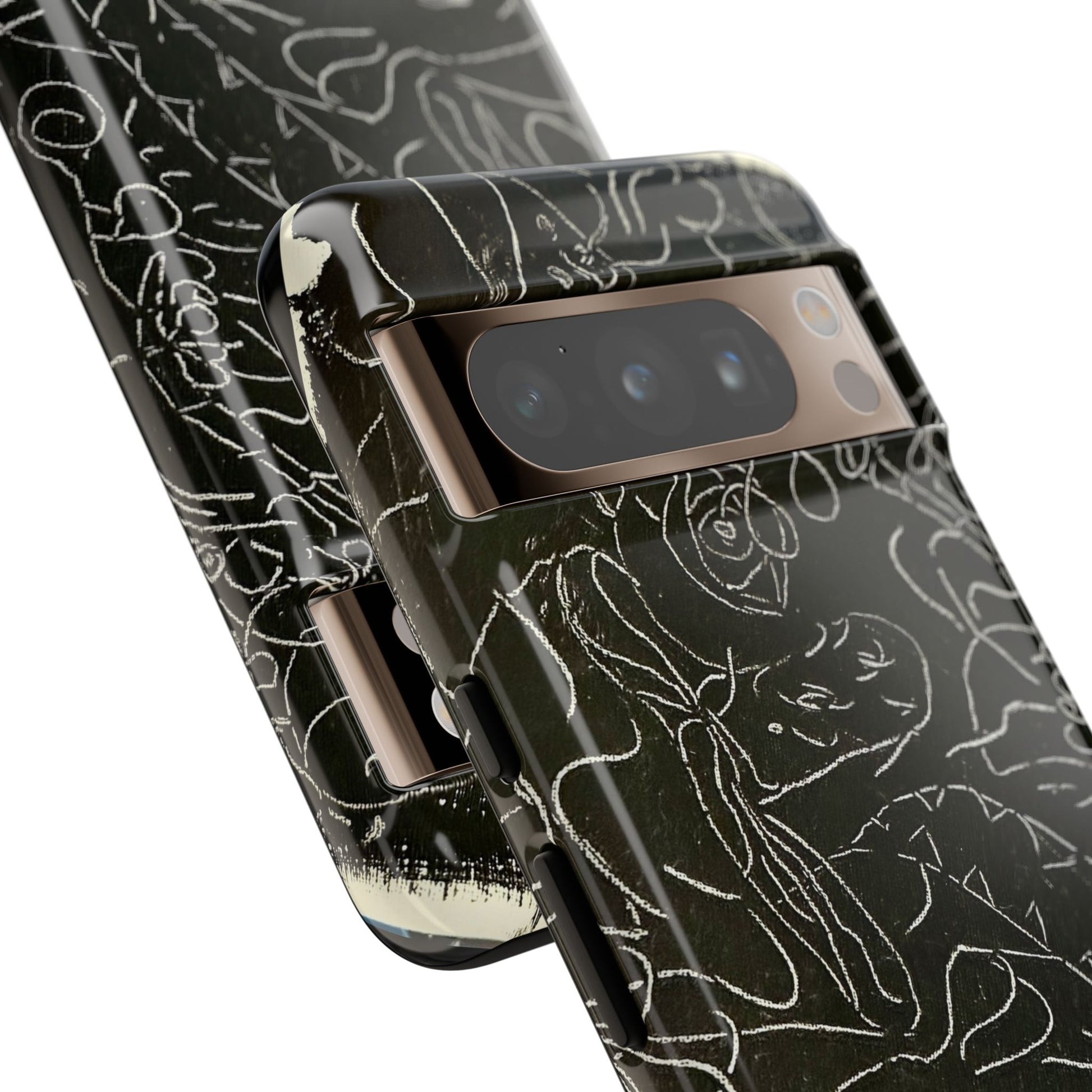 The Tangled Echoes Tough Phone Case merges sleek design with strong protection — featuring Kyle’s signature white-on-black linework from the Echo13 collection.